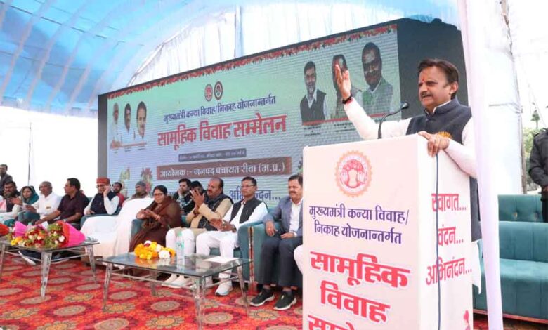 उप मुख्यमंत्री श्री राजेन्द्र शुक्ल ने कहा कि मुख्यमंत्री कन्यादान योजना गरीब परिवारों के लिए वरदान है। गरीब परिवार की बेटियों की शादी की समस्त जिम्मेदारी सरकार की है, प्रशासन द्वारा सभी व्यवस्थाएं की जाती हैं और धूमधाम से कन्याओं का विवाह/निकाह होता है। रीवा में आयोजित सामूहिक विवाह कार्यक्रम में 362 जोड़े दांपत्य सूत्र में बंधे। उप मुख्यमंत्री श्री शुक्ल ने सभी को सुखद दांपत्य जीवन की शुभकामनाएं दीं।