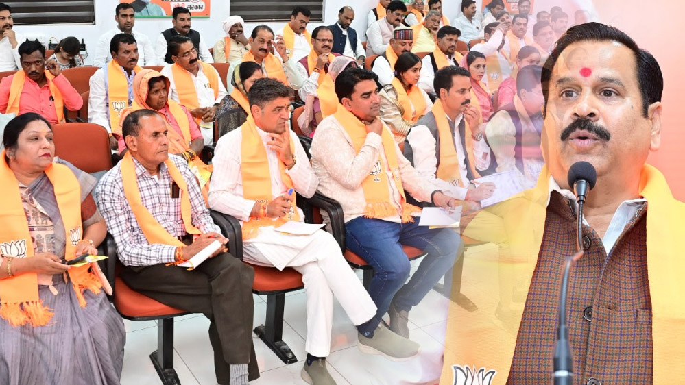 भारतीय जनता पार्टी के क्षेत्रीय संगठन महामंत्री श्री अजय जामवाल एवं प्रदेश प्रभारी डॉ. महेंद्र सिंह ने सोमवार को भाजपा प्रदेश कार्यालय में भोपाल संभाग के नगरीय एवं ग्रामीण निकायों के जनप्रतिनिधियों की बैठक को संबोधित करते हुए कहा कि प्रधानमंत्री श्री नरेंद्र मोदी जी ने 2047 तक भारत को विकसित देशों की पंक्ति में लाने का संकल्प लिया है। इस दिशा में प्रधानमंत्री श्री मोदी जी ने जब से देश की कमान संभाली है तभी से तेजी से विकास कार्य हो रहे है। हमें भी तन-मन और धन से अपने-अपने क्षेत्र का विकास करना होगा। देश की जनता का भरोसा हमारी पार्टी पर लगातार प्रधानमंत्री श्री मोदी जी के नेतृत्व में बढ़ता जा रहा है। हमें लगातार जनता का समर्थन इसलिए मिल रहा है क्योंकि प्रधानमंत्री श्री नरेन्द्र मोदी जी के नेतृत्व में हर वर्ग के लिए विकास योजनाएं शुरू की गई हैं। प्रदेश प्रभारी डॉ. महेंद्र सिंह ने कहा कि प्रदेश में ट्रिपल इंजन की सरकार होने के नाते पिछले कुछ सालों में प्रदेश का विकास तेज रफ्तार से हुआ है। इसे हम सबको मिलकर आगे बढाना है। श्रद्वेय अटल बिहारी वाजपेयी जी के सपनों को साकार करने के लिए उनके बताए मार्ग पर चलकर विकास करना होगा। इस अवसर पर प्रदेश महामंत्री व विधायक श्री भगवानदास सबनानी, प्रदेश उपाध्यक्ष श्री पकंज जोशी एवं जिलाध्यक्ष श्री रविंद्र यति मंचासीन रहे।