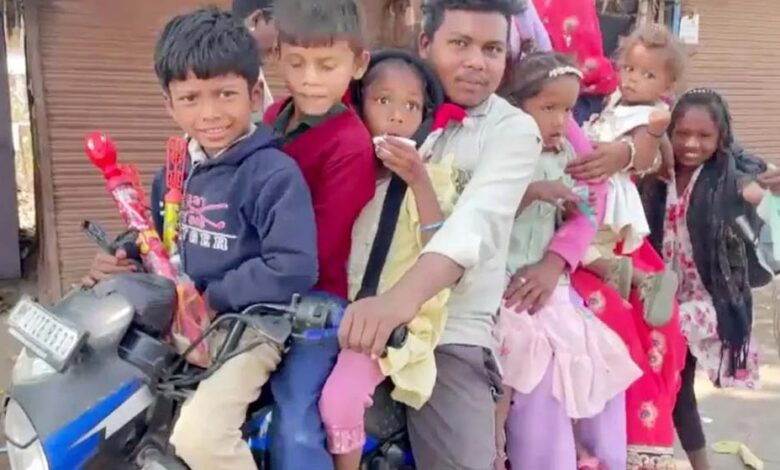 एक मोटर साइकिल में कितने लोग सवार हो सकते हैं- दो, तीन या हद से हद चार… लेकिन क्या कभी 9 सवारी बैठे देखा है? यह नजारा देखकर बाइक निर्माता कंपनी भी अपना माथा पीट लेगी  |