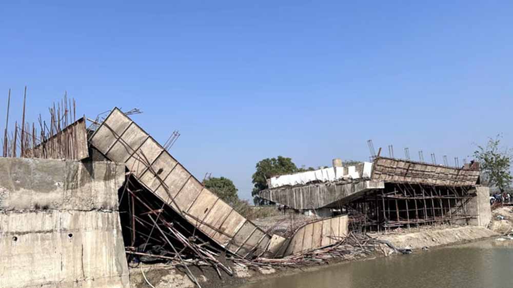 घोघरी नदी पर निर्माणाधीन पुल गिरा, लापरवाही पर तीन इंजीनियर सस्पेंड