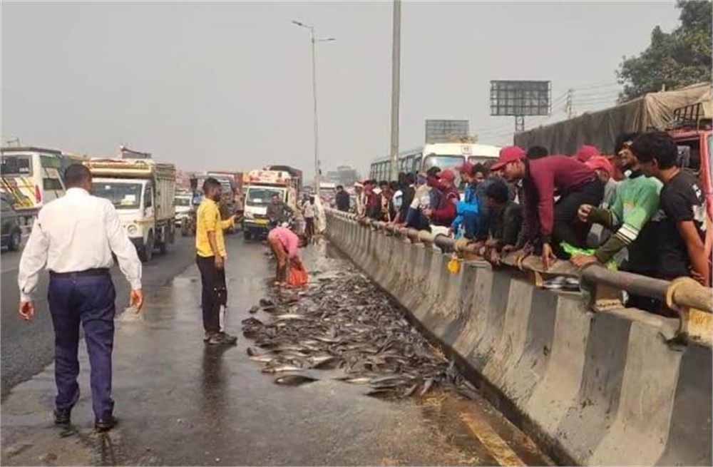 कैंटर चालक अजय ने बताया कि वह पानीपत से दिल्ली के सुल्तानपुरी मंडी में मछलियां पहुंचाने जा रहा था। जब पानीपत से दिल्ली की ओर मछलियों की खेप लेकर जा रहा एक कैंटर अचानक मुरथल फ्लाईओवर के पास पलट गया। कैंटर बीच हाईवे पर उलटने से बड़ी मात्रा में मछलियां सड़क पर फैल गईं। अजय ने बताया कि इससे उसे भारी आर्थिक नुकसान हुआ है। हादसे में किसी के गंभीर रूप से घायल होने की सूचना नहीं है। पुलिस आगे की कार्रवाई में जुटी है।