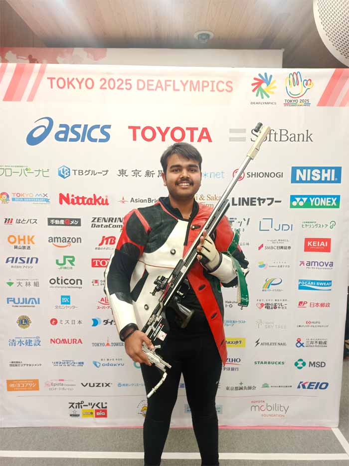 टोक्यो में आयोजित 25वीं समर डेफलंपिक में भारत तथा मध्यप्रदेश के लिए मध्यप्रदेश राज्य शूटिंग अकादमी के प्रतिभावान शूटर कुशाग्र सिंह राजावत ने गौरवपूर्ण उपलब्धि दर्ज कराई है। शूटर कुशाग्र सिंह ने 50 मीटर राइफल प्रोन (पुरुष वर्ग) स्पर्धा में उत्कृष्ट प्रदर्शन करते हुए व्यक्तिगत कांस्य पदक जीता। इस उपलब्धि से अंतर्राष्ट्रीय निशानेबाजी मंच पर मध्यप्रदेश का गौरव बढ़ाया है।