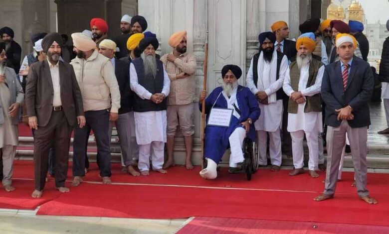 सजा मिलने के बाद गले में तख्ती, हाथ में बरछा लिए नजर आए सुखबीर सिंह बादल