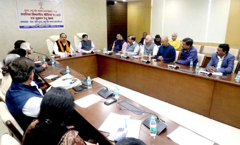 सूक्ष्म लघु एवं मध्यम उद्यम मंत्री श्री चैतन्य कुमार काश्यप ने उद्योग संघों के प्रतिनिनिधों से कहा है कि प्रदेश सरकार ग्लोबल इन्वेस्टर समिट से पहले मुख्यमंत्री डॉ. मोहन यादव के नेतृत्व में नई एमएसएमई (MSME) पॉलिसी के साथ ही भूमि आवंटन नियम और प्रोत्साहन की ऐसी पॉलिसी लाएगी जिससे मध्यप्रदेश में स्थानीय उद्यमिता का विकास विदेशी निवेशकों को प्रदेश में उद्योग लगाने के लिये आकर्षित करने के साथ सर्वाधिक रोजगार सृजन वाले प्रदेश के रूप में उभरे।