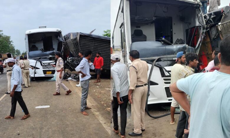 भोपाल जा रही बस के ब्रेक फेल, खड़ी बस से टकराकर पलटी; 25 यात्री घायल