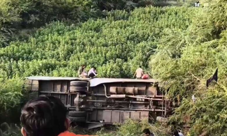 भिंड में अनियंत्रित होकर खाई में गिरी यात्रियों से भरी बस, मची चीख पुकार