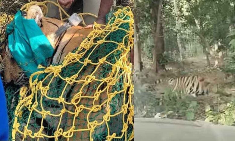छत्तीसगढ़-भाटापारा में बाघ को किया रेस्क्यू, वन विभाग ने तमोर पिंगला टायगर रिजर्व में छोड़ा