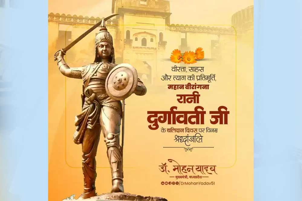 मुख्यमंत्री डॉ. मोहन यादव ने वीरता, साहस और त्याग की प्रतिमूर्ति रानी दुर्गावती के बलिदान दिवस पर विनम्र श्रद्धांजलि अर्पित की। मुख्यमंत्री डॉ. यादव ने कहा कि मातृभूमि की रक्षा के लिए वीरांगना रानी दुर्गावती का शौर्य और रणकौशल देश के गौरवशाली इतिहास का स्वर्णिम अध्याय है।