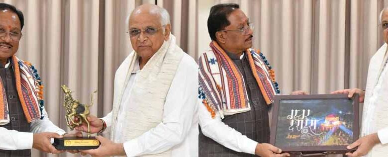 मुख्यमंत्री साय ने गुजरात के मुख्यमंत्री भूपेंद्र पटेल को बस्तर की लोककला और छत्तीसगढ़ के सांस्कृतिक गौरव पर आधारित बस्तर आर्ट तथा “बस्तर दशहरा” की कॉफी टेबल बुक भेंट की.