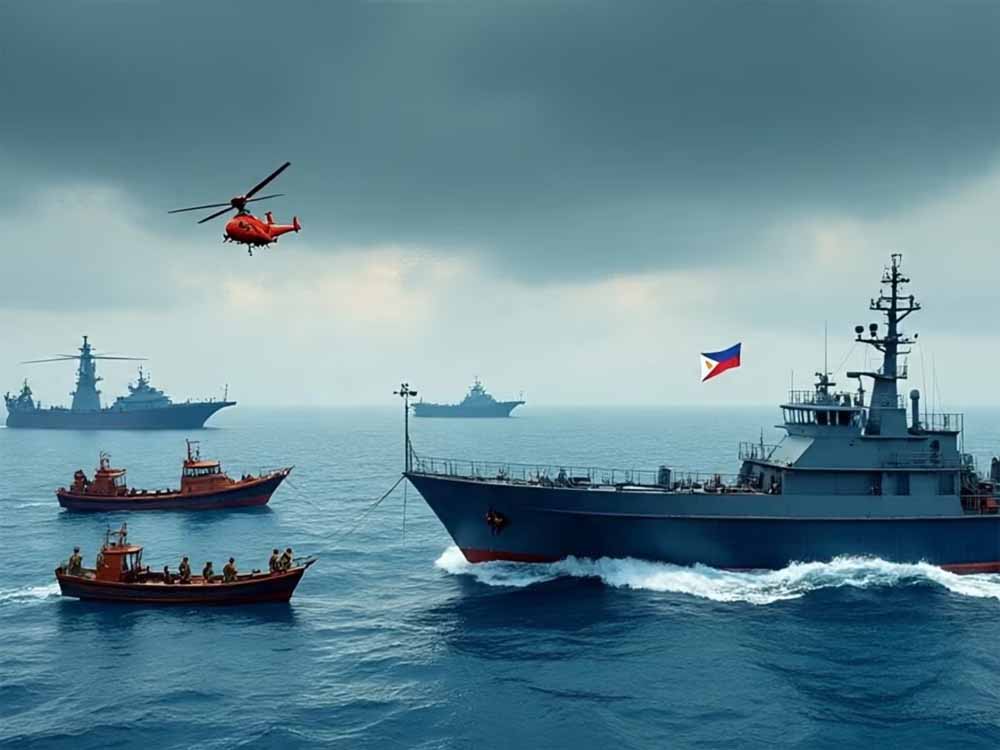 फिलीपींस की सेना ने एक बयान में कहा, "चीनी तटरक्षक बल के जहाजों को समुद्र में पानी की बौछारों का इस्तेमाल करते हुए युद्धाभ्यास और अभ्यास करते देखा गया है, जबकि कई छोटे जहाज, जैसे कठोर पतवार वाली फुलाने वाली नावें और तेज नावें, भी उथले पानी में तैनात की गई हैं। चीनी तटरक्षक बल की कुछ तेज नावें भारी चालक दल वाले हथियारों सहित माउंटेड हथियारों से लैस देखी गईं।"