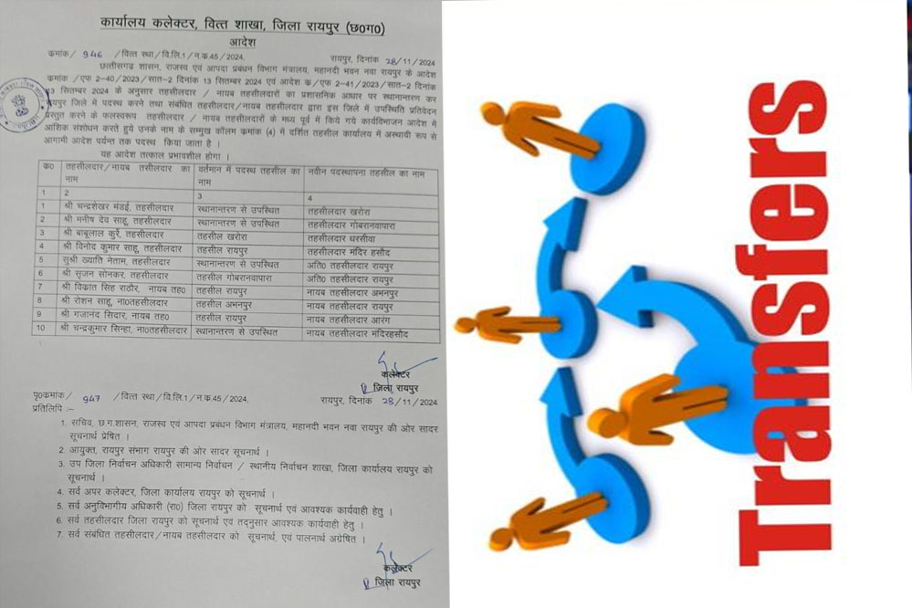कलेक्टर ने जारी किया आदेश, नायब तहसीलदार और तहसीलदारों का तबादला