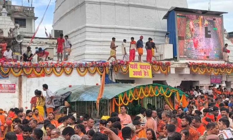 सावन के पहले सोमवार को बैद्यनाथ मंदिर में उमड़ी श्रद्धालुओं की भीड़
