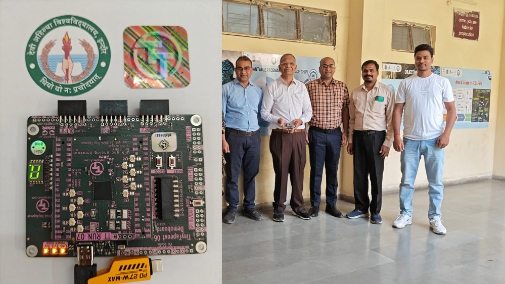 देवी अहिल्या विश्वविद्यालय (डीएवीवी) इंदौर ने एक सेमीकंडक्टर चिप डिजाइन की है, जो डेटा स्टोरेज की सटीकता को बढ़ाती है, जिससे सैटेलाइट इमेजरी और बायोमेडिकल एप्लीकेशन को फायदा होता है। सेमीकंडक्टर चिप को डीएवीवी के इंस्टीट्यूट ऑफ इंजीनियरिंग एंड टेक्नोलॉजी (IET) के VLSI ग्रुप द्वारा टाइनी टेपआउट शैक्षणिक परियोजना के तहत विकसित किया गया है। यह परियोजना सेमीकंडक्टर डिज़ाइन को अधिक सुलभ और किफायती बनाने का लक्ष्य रखती है। इस उपलब्धि के साथ, देवी अहिल्या विश्वविद्यालय उन प्रतिष्ठित भारतीय संस्थानों की सूची में शामिल हो गया है, जिन्होंने सफलतापूर्वक एक फैब्रिकेटेड सेमीकंडक्टर चिप डिज़ाइन किया है।