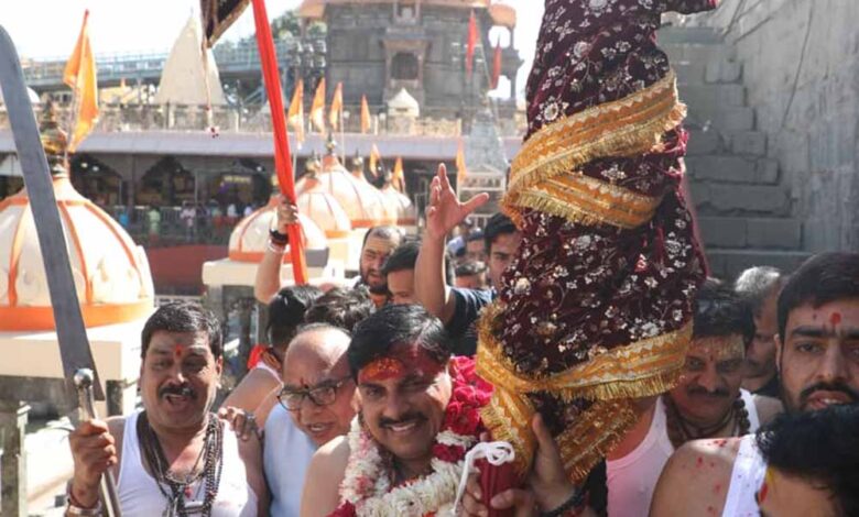 मुख्यमंत्री डॉ. यादव ने रविवार को उज्जैन में सुबह महाकालेश्वर मंदिर पहुंचकर भगवान महाकाल का पूजन अभिषेक करने के बाद मंदिर के सभा मंडप में रंगपंचमी के अवसर पर ध्वज चल समारोह में भगवान वीरभद्र जी के ध्वज और महाकाल ध्वज के साथ ही शस्त्रों का विधि विधान पूर्वक पूजन किया। मुख्यमंत्री डॉ. यादव ध्वज हाथ में लेकर मंदिर के कुंड परिसर तक गए। मुख्यमंत्री डॉ. यादव ने इस अवसर पर कलेक्टर रौशन कुमार सिंह को निर्देश दिए कि उज्जैन में परंपरागत रूप से निकलने वाले चल समारोह (गेर) की परंपरा को आगे भी कायम रखने के लिए सवा-सवा लाख रुपए की राशि दी जाए।