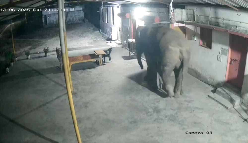 रिहायसी इलाके में हाथी का आतंक: दंतेल ने तोड़ा गेट, घर में घुसने की कोशिश