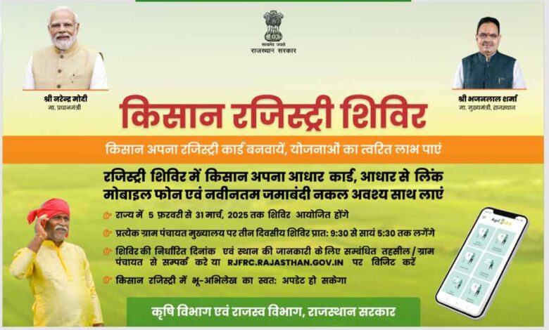 जयपुर जिले में बुधवार को होगा किसान रजिस्ट्री शिविरों का आगाज, हर किसान को मिलेगी 11 अंकों की एक विशिष्ट पहचान
