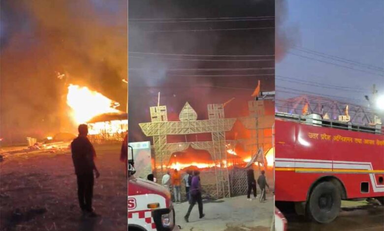 महाकुंभ मेले के सेक्टर 18 और 19 के बीच ई पंडालों में लगी आग