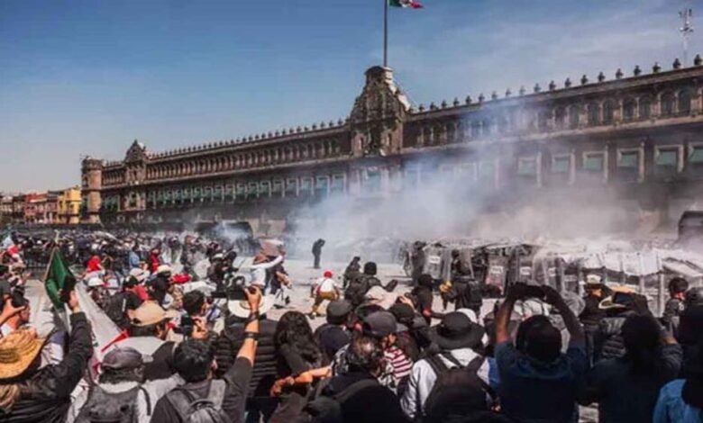 न्यूज एजेंसी के प्रत्यक्षदर्शियों के अनुसार, मेक्सिको सिटी में नकाबपोश प्रदर्शनकारियों के एक छोटे समूह ने राष्ट्रपति क्लाउडिया शीनबॉम आवास नेशनल पैलेस के चारों ओर लगी बाड़ को तोड़ दिया. इसके जवाब में दंगा पुलिस ने आंसू गैस के गोले दागे और प्रदर्शनकारियों को खदेड़ दिया.