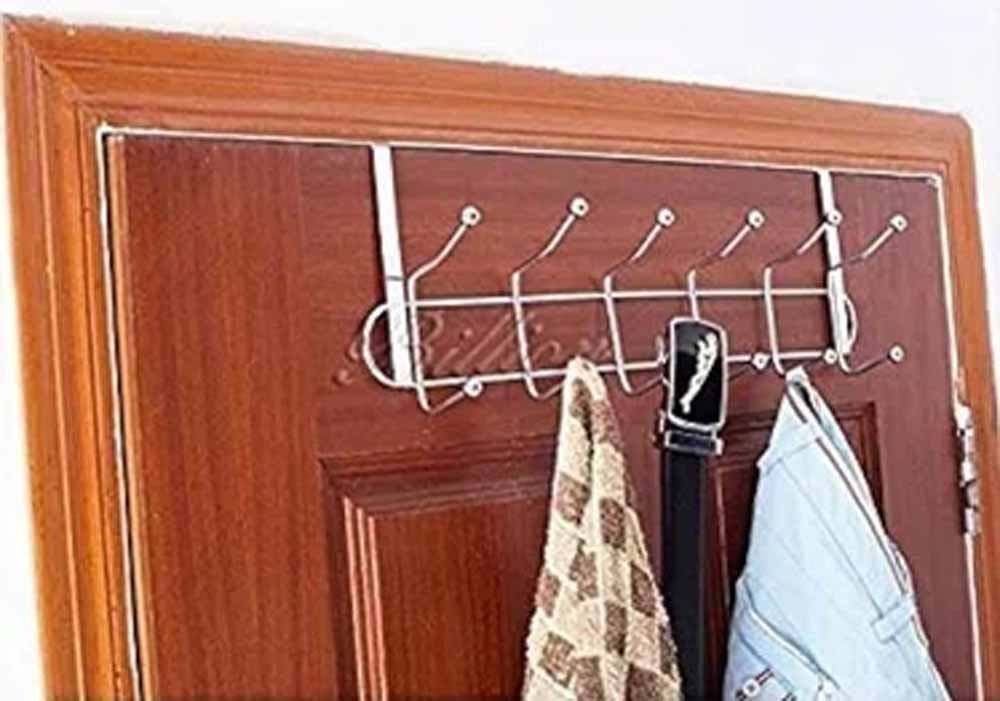 यदि कपड़े टांगना आवश्यक है, तो दरवाजे के ऊपरी हिस्से में हल्के और व्यवस्थित हुक का उपयोग करें।