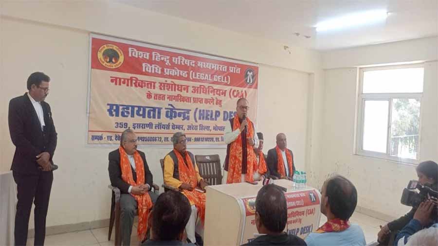 राजधानी भोपाल में CAA नागरिकता को लेकर हेल्प डेस्क का शुभारंभ कर दिया गया है। विश्व हिंदू परिषद (VHP) प्रदेश में बांग्लादेश, पाकिस्तान और अफगानिस्तान से आए गैर मुस्लिम शरणार्थी की नागरिकता के लिए निशुल्क कानूनी मदद करेगी। साथ ही कानून के दायरे में आने वाले लोगों को चिन्हित करने का भी काम करेगी। इस दौरान VHP के क्षेत्रीय संगठन मंत्री जितेंद्र सिंह पवार समेत कई पदाधिकारी मौजूद रहे।
