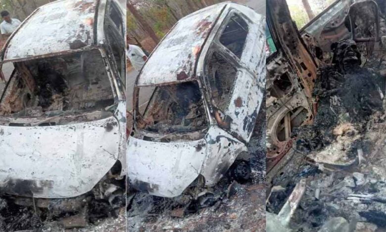 तेज रफ्तार कार अनियंत्रित होकर गड्ढे में गिरी, लगी आग, जिंदा जला ड्राइवर