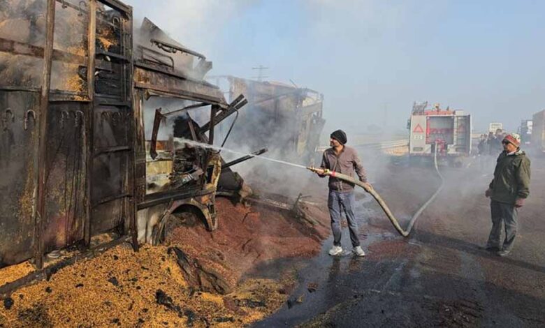 NH-152D accident: चरखी दादरी में एनएच-152डी पर गत देर रात गांव कमोद के समीप हुए भीषण सड़क हादसे में दो ट्राला आपस में टकराने के बाद आग की चपेट में आ गए। हादसा इतना भयंकर था कि एक ट्राला के चालक और परिचालक जिंदा जल गए, जबकि दूसरे ट्राला का चालक गंभीर रूप से घायल हो गया।