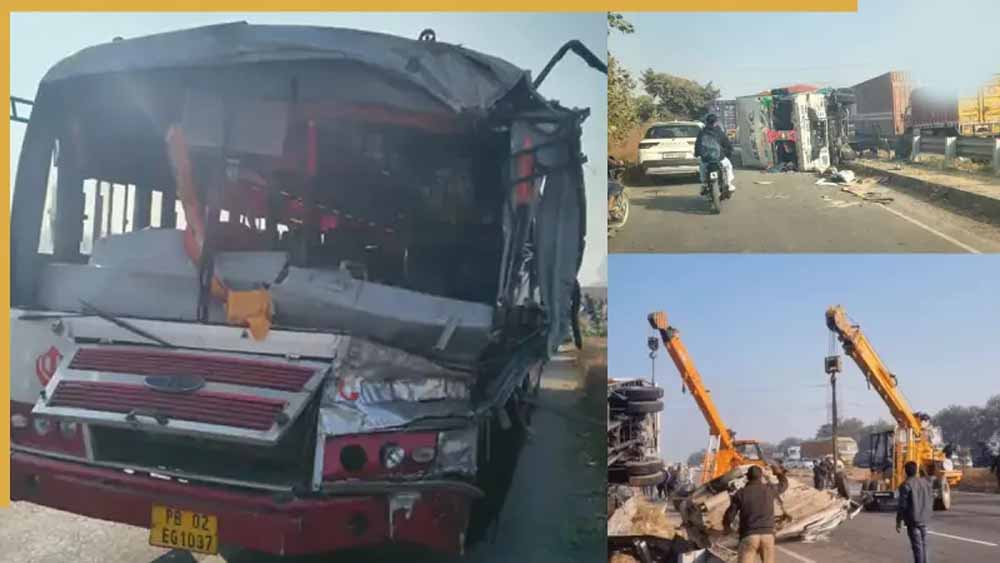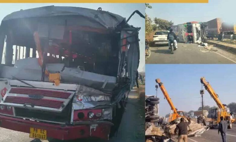 करनाल में भीषण सड़क हादसा: बस–बाइक–कार को रौंदता ट्रक पलटा, 4 की दर्दनाक मौत