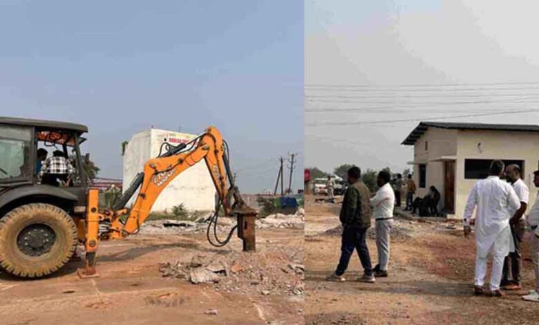 छत्तीसगढ़-रायपुर में 50 एकड़ जमीन पर अवैध प्लाटिंग, निगम की टीम ने जेसीबी से सड़क तोड़कर रोका काम