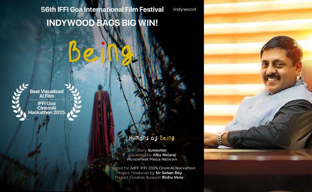इंडीवुड की एआई-जनरेटेड फिल्म बींग ‘Being’ ने 56वें इंटरनेशनल फिल्म फेस्टिवल ऑफ इंडिया (IFFI) के सिनेमा एआई हैकाथॉन 2025 में बेस्ट विज़ुअल्स फिल्म का अवॉर्ड अपने नाम किया। दुनिया भर से आए 500 से अधिक प्रविष्टियों में से चुनकर दिया गया यह सम्मान इंडीवुड के रचनात्मक सफर में एक महत्वपूर्ण उपलब्धि है और एआई-चालित सिनेमा में उसकी औपचारिक एंट्री को मजबूत करता है।