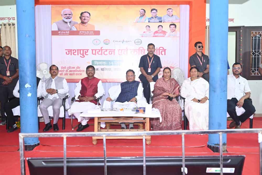 मुख्यमंत्री विष्णु देव साय ने आज रविवार को मुख्यमंत्री कैम्प कार्यालय बगिया में पर्यटन एवं कृषि क्रांति का शुभारंभ किया। जशपुर पर्यटन एवं कृषि क्रांति इको टूरिज्म और होमस्टे से आत्मनिर्भरता की ओर बढ़ते कदम जशपुर के स्व सहायता समूह और किसानों को इसका प्रत्यक्ष लाभ मिलेगा। इस अवसर पर झारखंड सरकार के पूर्व मुख्यमंत्री अर्जुन मुंडा, सरगुजा आदिवासी विकास प्राधिकरण की उपाध्यक्ष और पत्थलगांव विधायक श्रीमती गोमती साय, जशपुर विधायक श्रीमती रायमुनि भगत, जिला पंचायत अध्यक्ष सालिक साय, कलेक्टर रोहित व्यास, एस एस पी शशि मोहन सिंह, जिला पंचायत सीईओ अभिषेक कुमार, सुनील गुप्ता, मुकेश शर्मा सहित जनप्रतिनिधिगण और बड़ी संख्या में आम नागरिक उपस्थित थे।
