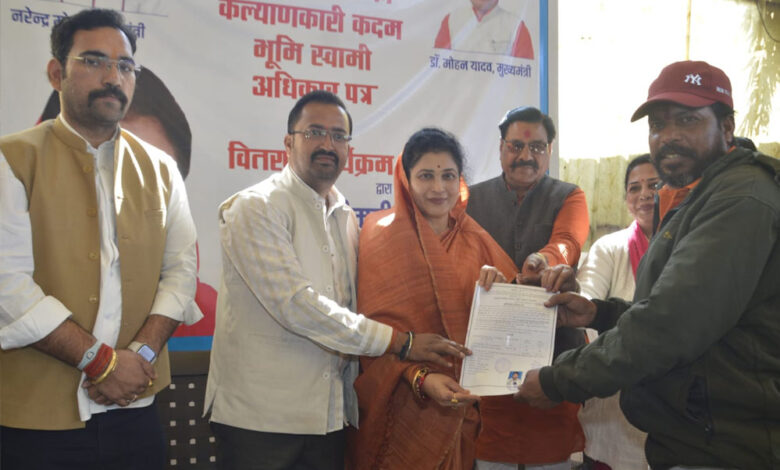 भूमि स्वामी अधिकार-पत्र देकर बनाया मालिक : राज्य मंत्री श्रीमती गौर