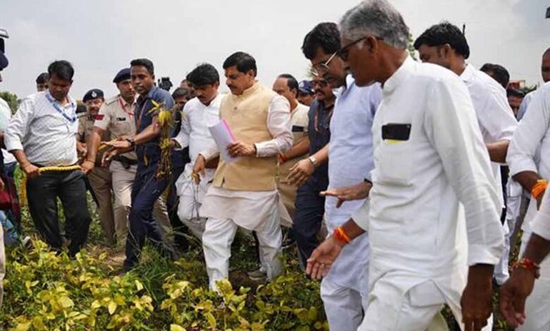 प्रदेश सरकार किसानों के साथ है और हम किसानों को किसी तरह का नुकसान नहीं होने देंगे। मुख्यमंत्री डॉ. मोहन यादव ने गुरूवार को शाजापुर जिले की पोलायकलां तहसील के ग्राम खड़ी में विभिन्न कारणों से खराब हुई सोयाबीन की फसल के अवलोकन के बाद किसानों को यह भरोसा दिलाया। मुख्यमंत्री डॉ. यादव ने शाजापुर कलेक्टर सहित प्रदेश के सभी कलेक्टर्स को खराब हुई सोयाबीन की फसल का सर्वे कराने के निर्देश दिये। किसान कल्याण एवं कृषि विकास मंत्री श्री एदल सिंह कंषाना, विधायक श्री घनश्याम चन्द्रवंशी, श्री अरूण भीमावद, जिला पंचायत अध्यक्ष श्री हेमराज सिंह सिसोदिया एवं डॉ. रवि पाण्डेय भी इस अवसर पर मौजूद थे।