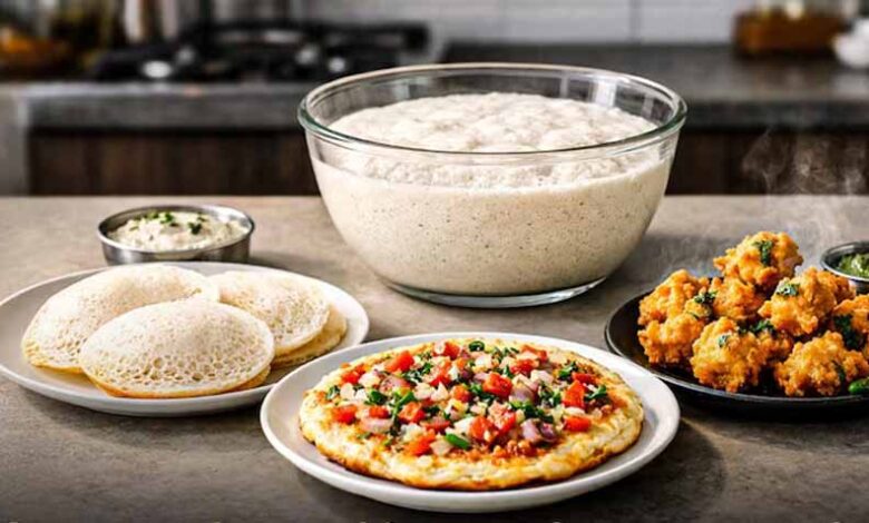 साउथ इंडियन फूड्स लोगों की पहली पसंद होते हैं इसलिए कई लोग मार्केट में ये चीजें खाना पसंद करते हैं तो कई लोग घर पर बनावाकर भी खाते हैं. अब कुछ हल्का खाना हो या फिर टेस्टी खाना हो, अक्सर लोग चावल और दाल का बैटर तैयार करते हैं और उससे इडली, डोसा जैसी चीजें बनाते हैं. कई लोग इस बैटर को अधिक समय तक भी रखते हैं लेकिन अधिक समय तक बैटर रखने पर यह खट्टा होने लगता है और उसका स्वाद बिगड़ जाता है. अगर आपके फ्रिज में भी डोसा बैटर बचा हुआ है तो उसे फेंकने की बजाय आप उससे नीचे बताए हुए कुछ स्नैक्स भी बना सकते हैं.