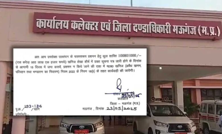मऊगंज जिले में अवैध खनन पर जिला प्रशासन ने अब तक की सबसे बड़ी कार्रवाई की है. खनन माफियाओं (Mining Mafias) के खिलाफ सख्त रुख अपनाया गया है. कलेक्टर संजय कुमार जैन के नेतृत्व में हुई इस कार्रवाई के तहत एक क्रेशर संचालक पर 10 करोड़ 8 लाख एक हजार रुपये का भारी-भरकम जुर्माना लगाया गया है. यह जुर्माना मऊगंज तहसील के हर्रहा क्षेत्र में तय सीमा से बाहर खनन करने और बांध क्षेत्र के नजदीक अवैध गतिविधियों में संलिप्त पाए जाने पर लगाया गया है.