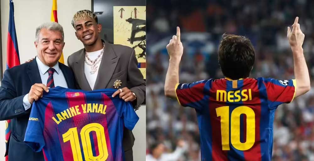 लामिन यामल ने यह जर्सी अंसु फाति से ली है, जो हाल ही में एक सीजन के लिए क्लब में शामिल हुए थे. इसके साथ यमल, मेसी, रोनाल्डिन्हो, रिवाल्डो, रोमारियो और डिएगो माराडोना के बाद, क्लब में नंबर 10 जर्सी पहनने वाले दिग्गज खिलाड़ियों की सूची में शामिल हो गए हैं. इससे पहले यमाल ने सोशल मीडिया पर एक पोस्ट करके इस खबर को चर्चा में ला दिया था. पोस्ट में जर्सी नंबर 10 में माराडोना, रोनाल्डिन्हो और मेसी की तस्वीरें थीं. जिसने प्रशंसकों में अटकलों को जन्म दिया था. जिसकी अब पुष्टि हो गई है.