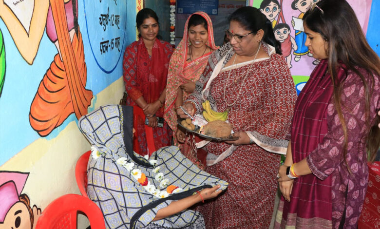महिला एवं बाल विकास मंत्री सुश्री निर्मला भूरिया ने झाबुआ जिले के कल्याणपुरा के तड़वी फलिया में स्थित आंगनवाड़ी केन्द्र पर पहुँच कर मंगल दिवस आयोजन में सम्मिलित हुई।