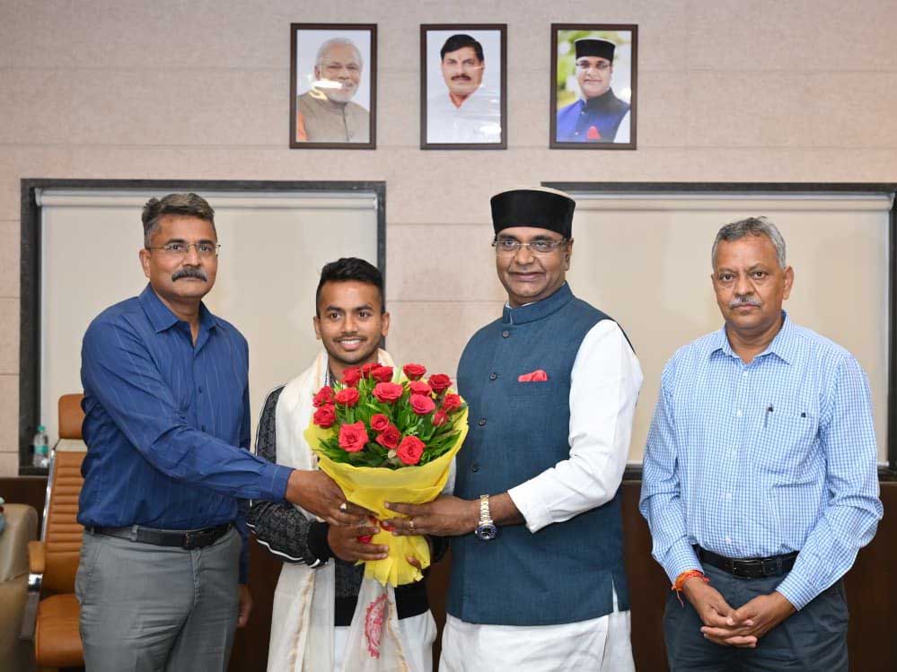 हॉकी एशिया कप में विजय पर मंत्री सारंग ने विवेक सागर को किया सम्मानित