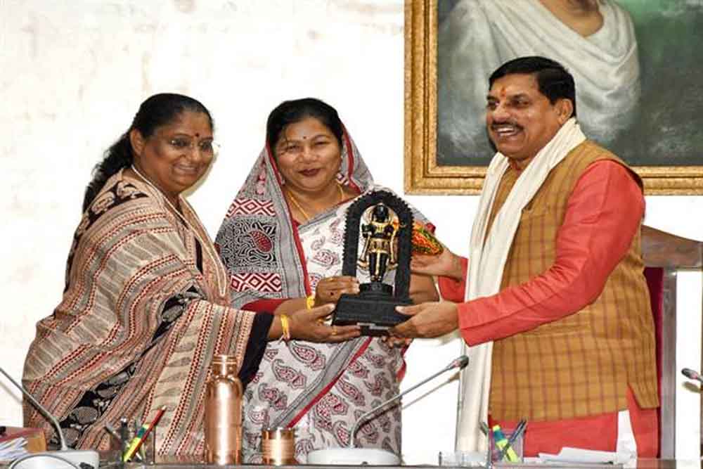 लोक स्वास्थ्य यांत्रिकी मंत्री श्रीमती संपतिया उइके एवं महिला बाल विकास सुश्री निर्मला भूरिया ने मुख्यमंत्री डॉ. मोहन यादव को ग्लोबल इन्वेस्टर्स समिट 2025 की अभूतपूर्व सफलता के लिए शॉल, श्रीफल और भगवान श्रीराम की प्रतिमा भेंट कर बधाई दी।