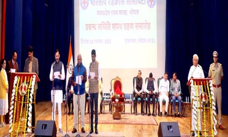 राज्यपाल पटेल शुक्रवार को भारतीय रेडक्रॉस सोसाइटी की मध्यप्रदेश राज्य शाखा की नवगठित प्रबंध समिति एवं पदाधिकारियों के शपथ ग्रहण समारोह को संबोधित कर रहे थे। उन्होंने नव नियुक्त चेयरमैन डॉ. श्याम सिंह कुमरे, उप सभापति मनीष रावल और मानसेवी कोषाध्यक्ष दीपेश मेहता को शपथ दिलायी। सभी को पुष्प-गुच्छ भेंटकर आगामी कार्यकाल के लिए शुभकामनाएँ दी। राज्यपाल पटेल ने रेडक्रॉस के जिला प्रतिनिधियों को संभागवार शपथ दिलायी। कलेक्टर एवं जिला निर्वाचन अधिकारी भोपाल कौशलेंद्र विक्रम सिंह ने नव निर्वाचित तीनों पदाधिकारियों को सर्टिफ़िकेट प्रदान किया। राजभवन के सांदीपनि सभागार में आयोजित समारोह में आयुक्त लोक स्वास्थ्य परिवार कल्याण डॉ. तरुण राठी भी मौजूद थे।