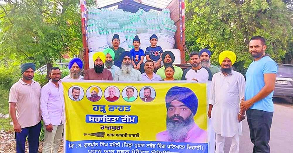 आम आदमी पार्टी की ट्रेड विंग के जिला अध्यक्ष और ऑल स्कूल पेरेंट्स एसोसिएशन के अध्यक्ष गुरप्रीत सिंह धमौली के नेतृत्व में, पेरेंट्स बुक डिपो के सहयोग से पठानकोट के बाढ़ प्रभावित क्षेत्रों के लिए 200 सूखे राशन पैकेट से भरा एक ट्रक रवाना किया गया। इन पैकेटों में रोज़मर्रा के इस्तेमाल की आवश्यक सामग्री शामिल थी, जैसे आटा, चावल, 1 किलो सूखा दूध, दालें, सरसों का तेल, मसाले, साबुन और अन्य ज़रूरी सामान। इसके साथ ही, 1-1 लीटर वाली पानी की 100 पेटियां भी भेजी गईं। इस तरह कुल मिलाकर लगभग 16 टन राशन की मदद भेजी गई है। यह राहत सामग्री ऑल स्कूल पेरेंट्स एसोसिएशन के सलामपुर रोड स्थित वृद्धाश्रम कार्यालय से रवाना की गई।