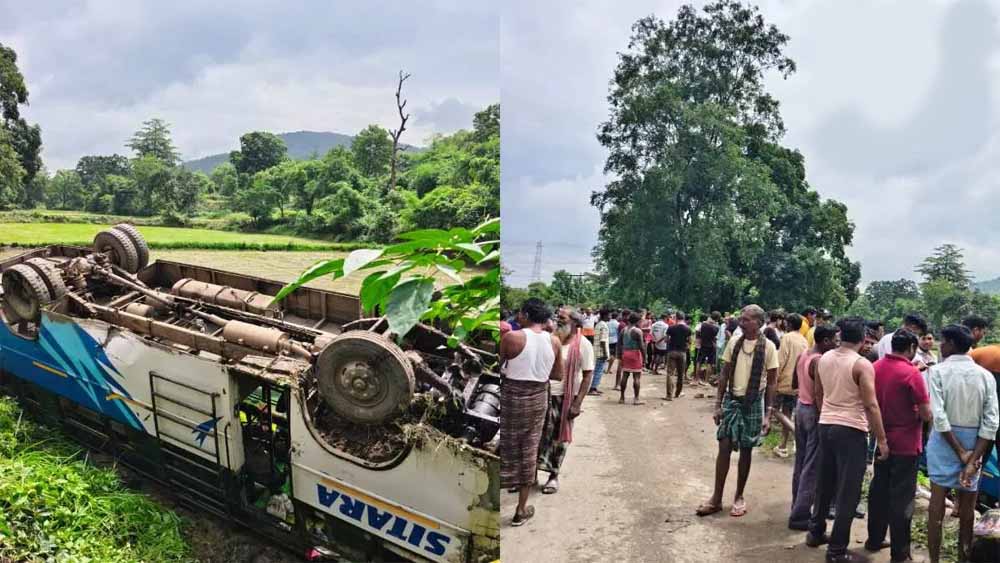 अनियंत्रित होकर पलटी यात्री बस, एक दर्जन से अधिक लोग हुए घायल