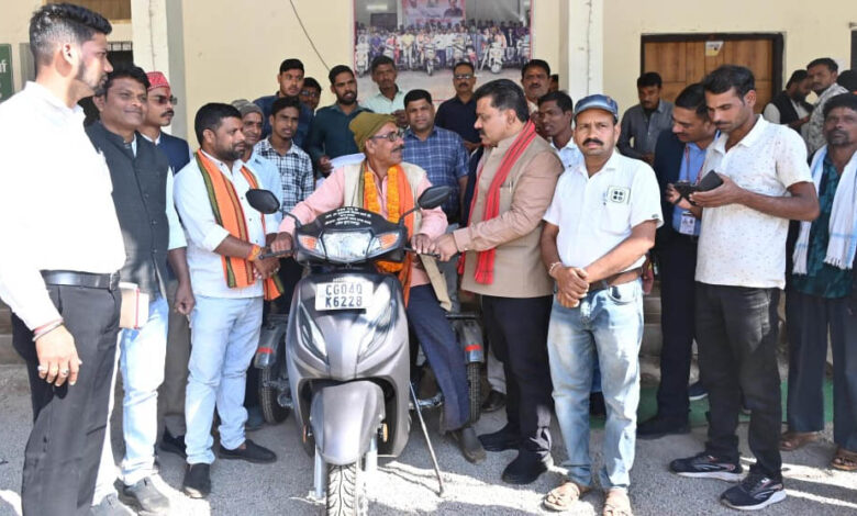 रायपुर : दिव्यांग नेमी सिंह को उपमुख्यमंत्री शर्मा ने प्रदान की पेट्रोल चलित स्कूटी