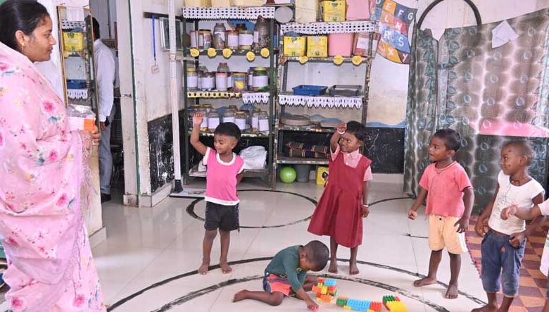 मंत्री राजवाड़े ने जशपुर जिले के रूपसेरा और लोदाम आंगनबाड़ी केंद्रों का औचक निरीक्षण