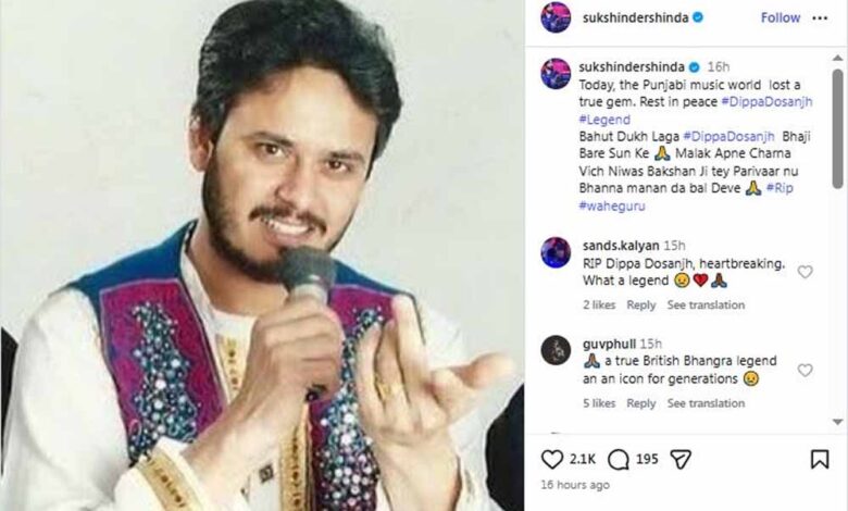 गायक सुखशिंदर शिंदा ने किया दुख व्यक्त