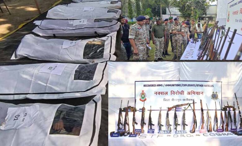सुरक्षा बलों की बड़ी सफलता: 1.30 करोड़ के इनामी 18 नक्सली ढेर, भारी हथियारों का जखीरा बरामद