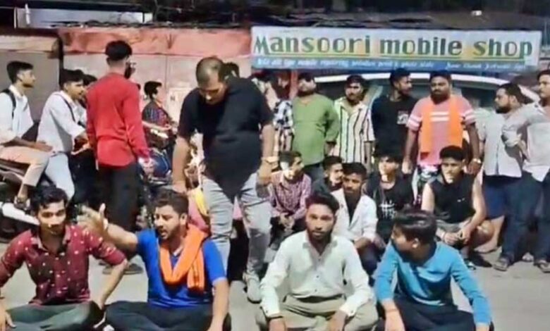 कोतवाली के बाहर प्रोटेस्ट करते हिंदूवादी संगठन के लोग