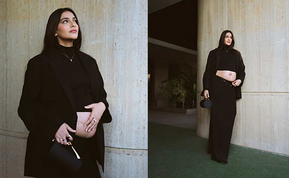 बॉलीवुड की मशहूर अभिनेत्री सोनम कपूर दूसरी बार मां बनने वाली हैं। उन्होंने कुछ समय पहले ही इस बात की जानकारी दी थी। सोमवार को अभिनेत्री ने अपना बेबी बंप फ्लॉन्ट करते हुए शानदार तस्वीरें इंस्टाग्राम पर शेयर की। शेयर की गई तस्वीरों में सोनम काले रंग के आउटफिट में नजर आ रही हैं। उन्होंने क्रॉप टॉप पहना है, जिसके साथ लंबी स्कर्ट और ऊपर से कोट डाला हुआ है। लुक को और भी आकर्षक बनाने के लिए उन्होंने काला बैग भी लिया है। पोस्ट कर सोनम ने लिखा, "मम्मा का डे आउट इवेंट के लिए तैयार।" इंस्टाग्राम पर सोनम का लुक काफी आकर्षक लग रहा है, वे प्रेग्नेंसी के दौरान भी फैशन को बिल्कुल नहीं छोड़ रही हैं और कॉन्फिडेंट तरीके से अपनी खूबसूरती दिखा रही हैं।