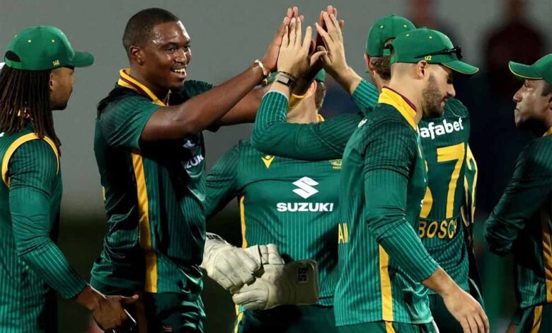दक्षिण अफ्रीका टी20 टीम: एडेन मार्करम, कॉर्बिन बॉश, डेवाल्ड ब्रेविस, डोनोवन फरेरा, मार्को जेनसन, केशव महाराज, क्वेना मफाका, डेविड मिलर, सेनुरन मुथुसामी, लुंगी एनगिडी, लुआन-ड्रे प्रीटोरियस, कागिसो रबाडा, रयान रिकेल्टन, ट्रिस्टन स्टब्स, लिज़ाद विलियम्स।
