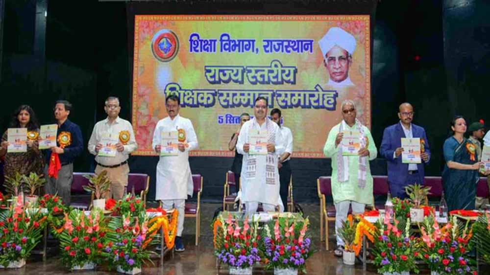 जयपुर के बिड़ला सभागार में शुक्रवार को राज्य स्तरीय शिक्षक सम्मान समारोह का भव्य आयोजन किया गया। इस अवसर पर कुल 75 शिक्षकों को शॉल, प्रशस्ति-पत्र और स्मृति चिह्न प्रदान कर सम्मानित किया गया। इनमें 66 शिक्षक तीन श्रेणियों से और 9 शिक्षक विशेष योगदान हेतु चुने गए।