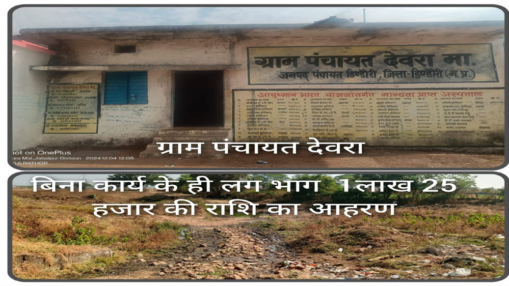 ग्राम पंचायत देवरा की कटोरी नाल में लगभग 51लाख की लागत से स्टॉप डैम काजवेकम का निर्माण कार्य कराया जाना है जहां पर एक फावड़ा भी नहीं चलाया गया है फिर भी 1लाख से ऊपर की मजदूरी का भुगतान कर दिया गया है आखिर उन मजदूरों ने कार्य कहां पर किया है और उनको भुगतान कहां का किया गया है गौर करने वाली बात है